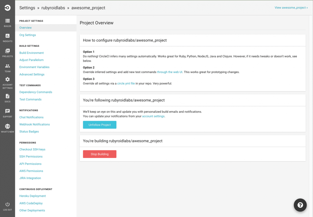 A huge advantage of Circle CI is that one can make a build with SSH access. This means that Circle CI will run the script you created and at the same time you within half an hour will be able to go to server and check what’s happening there or run commands yourself.