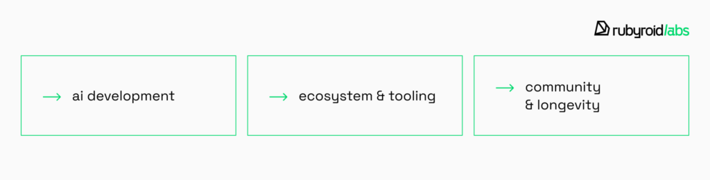 For example, Ruby’s web development ecosystem is exceptionally mature, with Rails providing a complete full-stack solution and gems covering virtually every web development need, but its data science and machine learning libraries are limited compared to Python’s offerings.