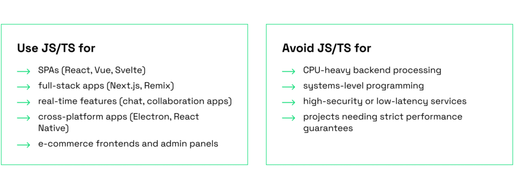 Both languages have the same runtime underneath. TypeScript compiles to plain JavaScript. They often coexist in the same codebase.