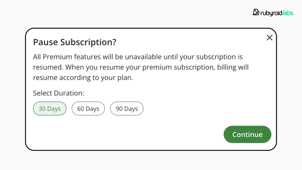 The solution is to offer a “pause subscription” option, presented prominently within the cancellation flow.