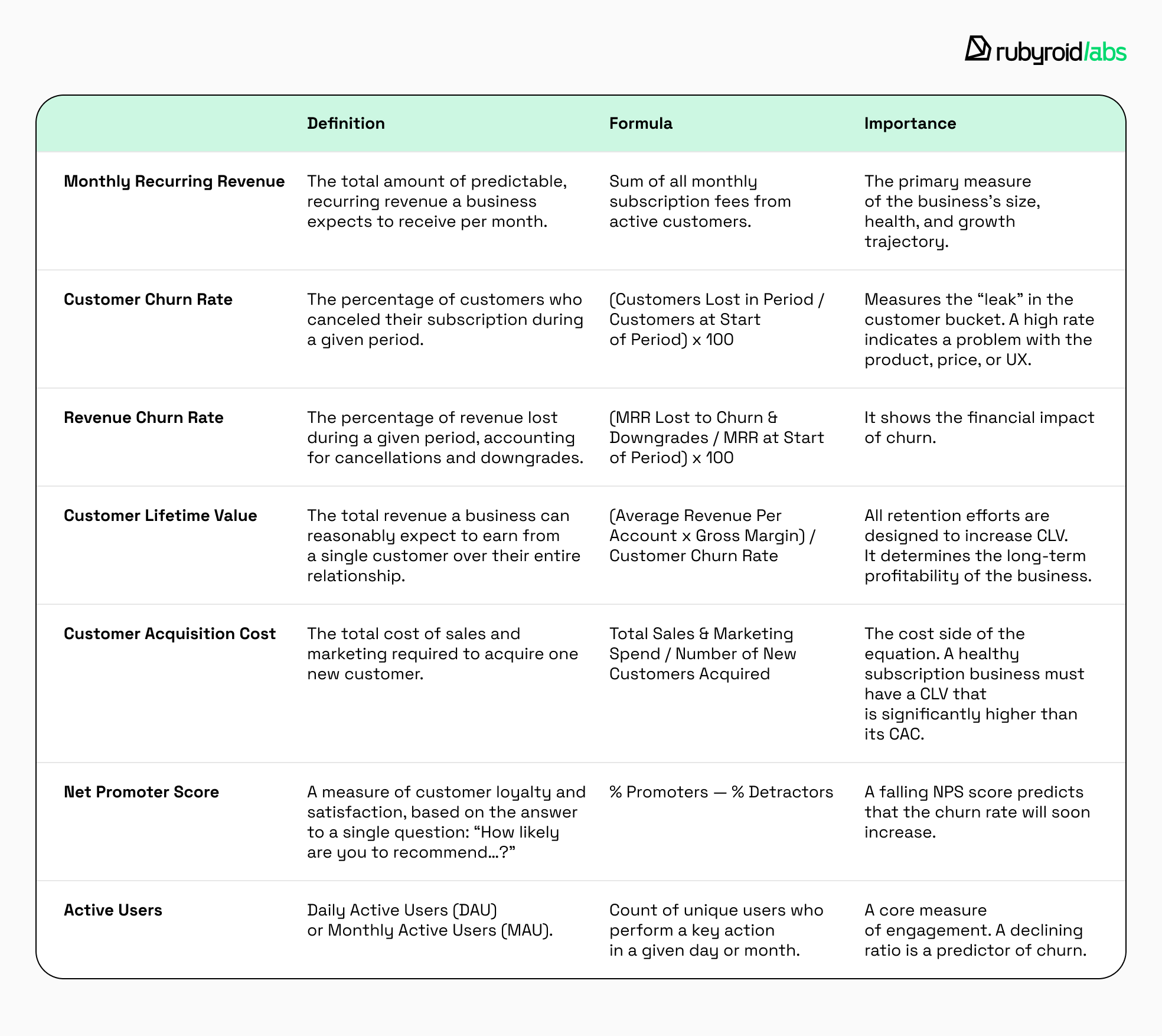 In the subscription model, sign-up marks the beginning of a long-term relationship. Accordingly, success is measured by longevity rather than one-time value, using a new set of metrics: