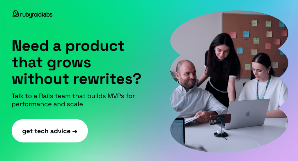 Scaling challenges are inevitable as your MVP gains traction but they don’t have to be painful. Ruby on Rails offers a robust set of tools that help you solve performance, database, and caching issues early, so you can focus on what matters most: growing your product and serving your users.