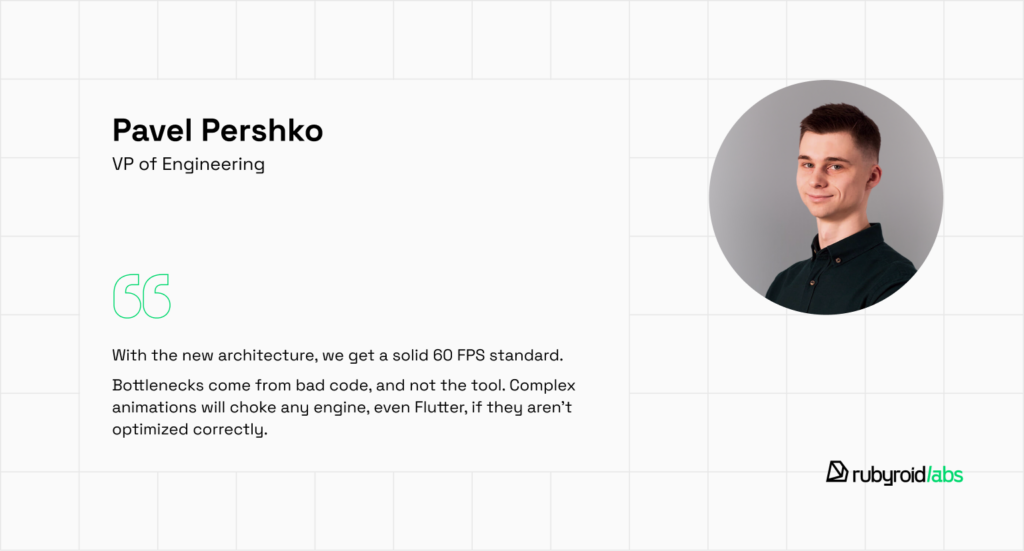 The New Architecture transformed React Native from a shortcut into a foundation. You’re no longer trading speed for stability but get both. Costs scale predictably, maintenance stays under control, and your app performs like it was built natively.