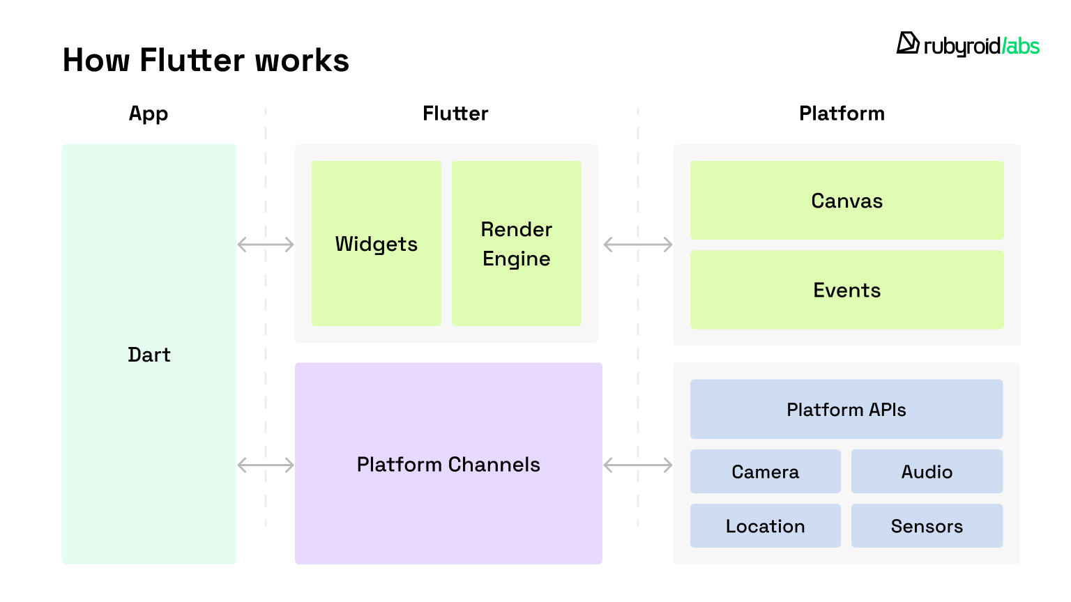 Flutter handles all rendering internally. Rather than relying on iOS or Android to draw UI elements, it uses the Impeller engine to paint everything directly. Buttons, animations, and text all get rendered through Flutter’s own graphics pipeline.