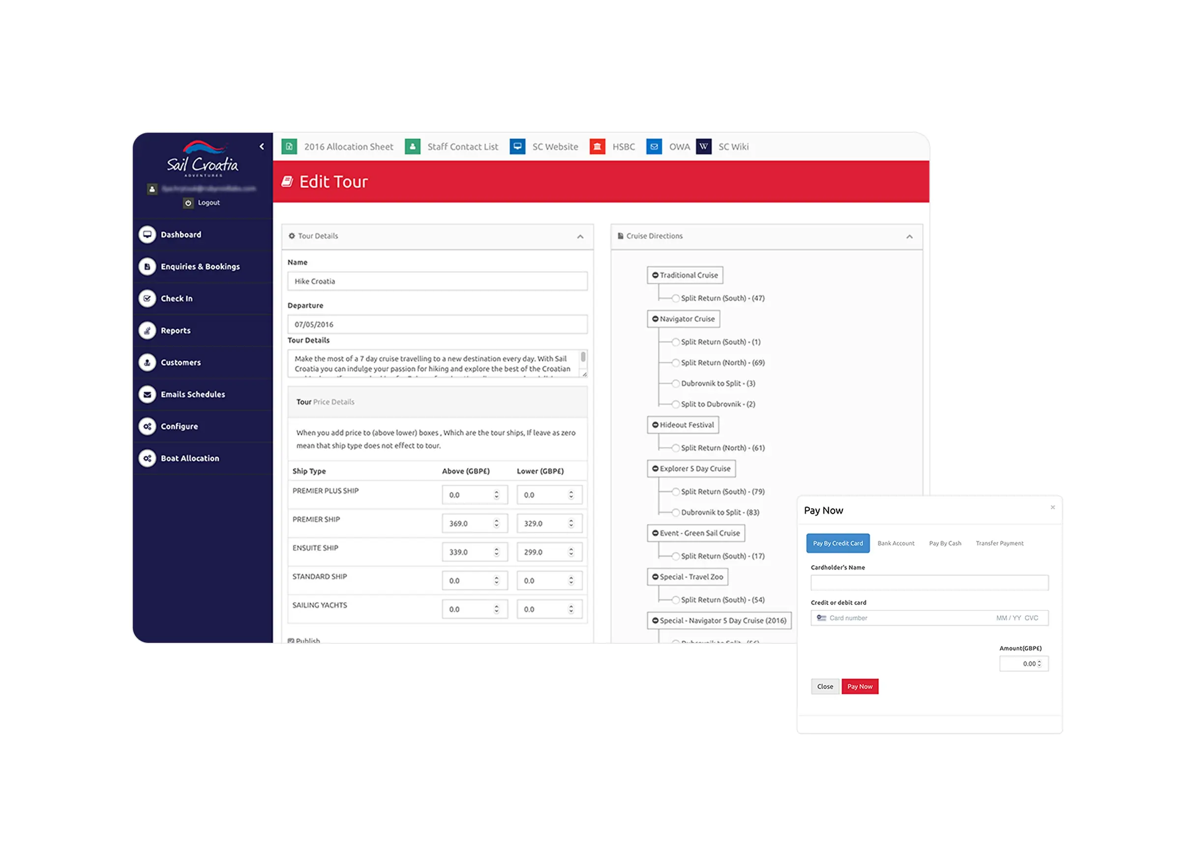 The system centralizes booking data, availability tracking, and operational workflows. Managers can efficiently handle reservations, allocate yachts and services, track trip details, and manage customer records within a single environment.