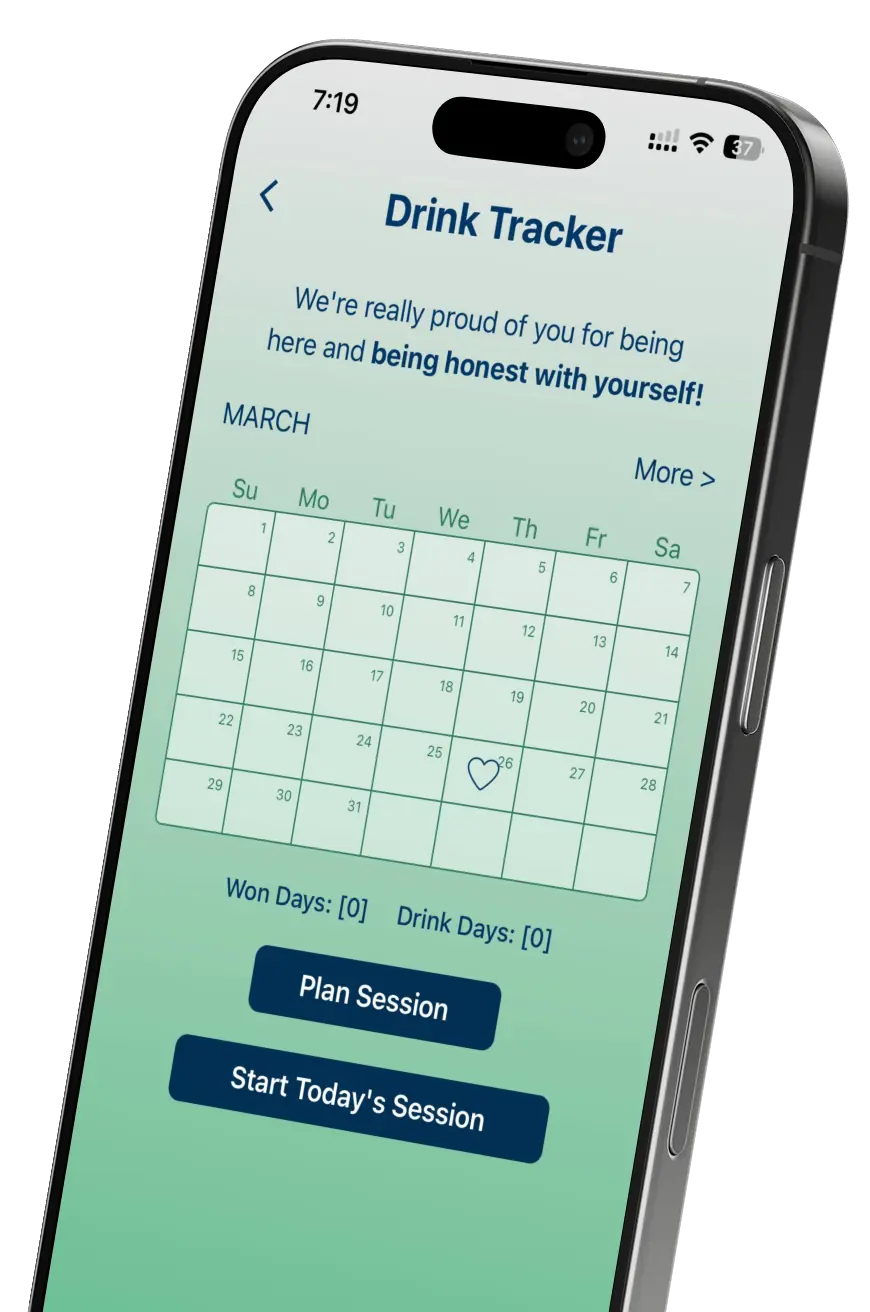 The alcohol moderation tracker became one of the app’s core features. It includes session planning, real-time drink tracking, hydration monitoring, limit reminders, and post-session reflections.